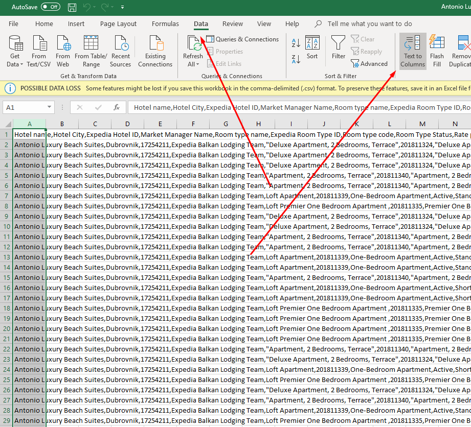 Nakon toga otvaramo excel tablicu koju smo skinuli te ju uredujemo kako bi se lakse navigirali