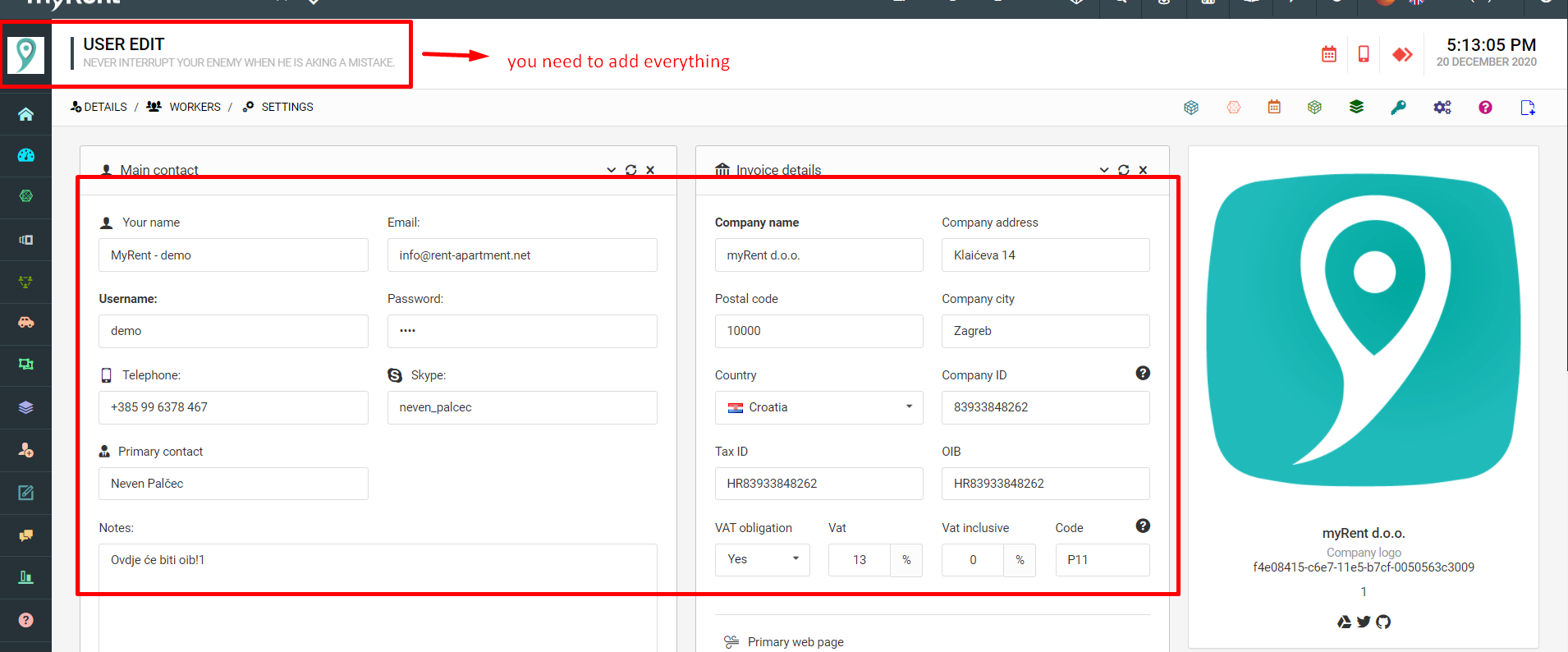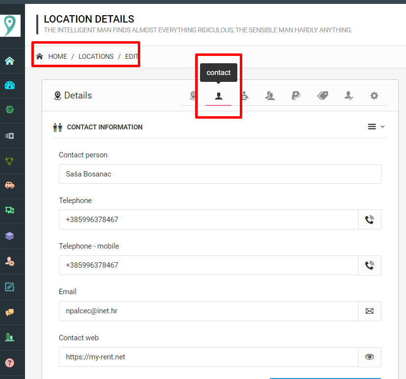 To add Contact details in TFW you will find it in myRent you will find it under: