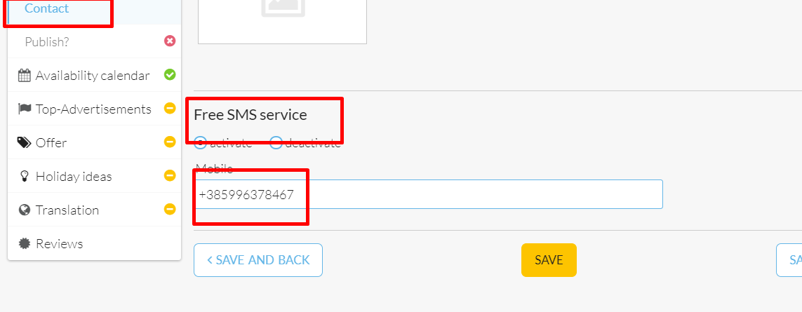 To add Contact/Free SMS service in TFW you need to add you number in myRent under property details-location-CONTACT INFORMATION