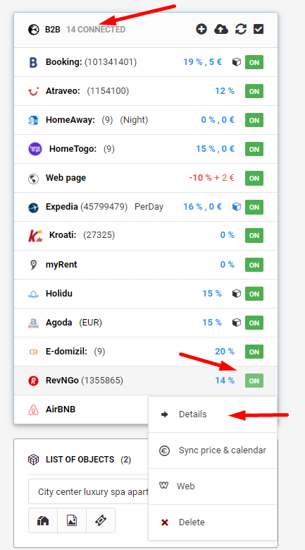 Once you did it in extranet of RevNGo then you need to go in myRent, in property details - B2B setings.under RevNGo and click on green OK - DETAILS